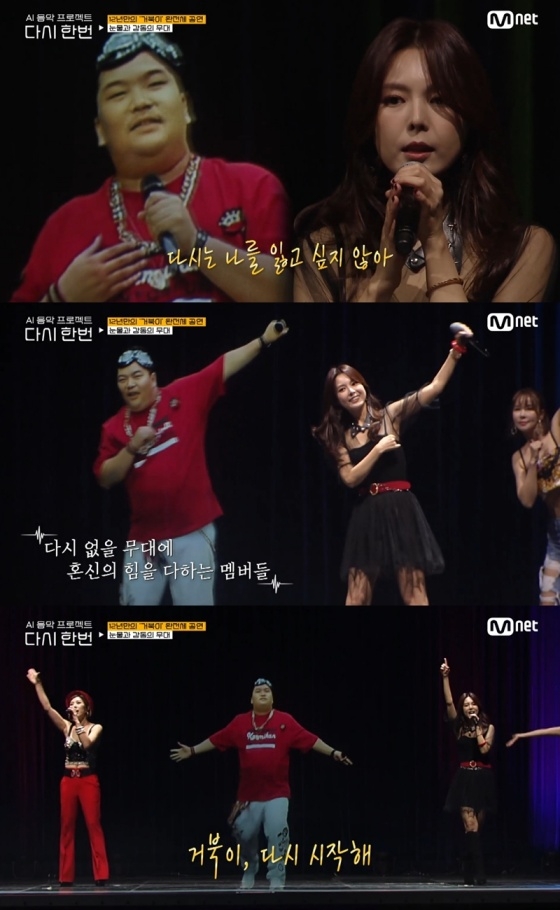 그래서인지 엠넷에서 인공지능(AI) 음악 프로젝트 ‘다시 한번’에서 고(故) 터틀맨(1970~2008·임성훈)의 모습을 복원해 12년 만에 그룹 거북이의 완전체를 보여줬다.