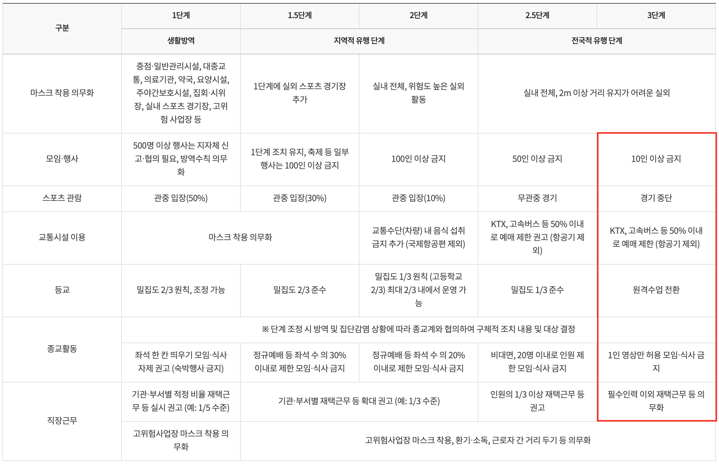3단계 격상이 현실화 되고 있다. 2.5단계에서 3단계로 격상 시 차이점을 알아보자.