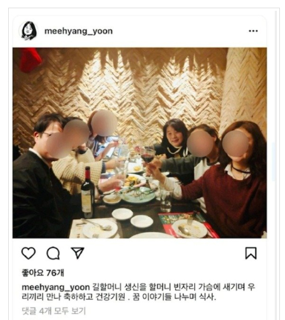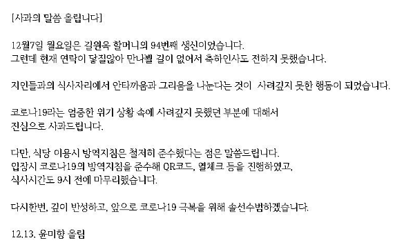 일본군 위안부 피해자 성금 유용 혐의 등으로 불구속 기소된 상황에, 이 시국에.. 길 할머니 생신을 이유로 음주를.. 모임을 했어야만 했나?