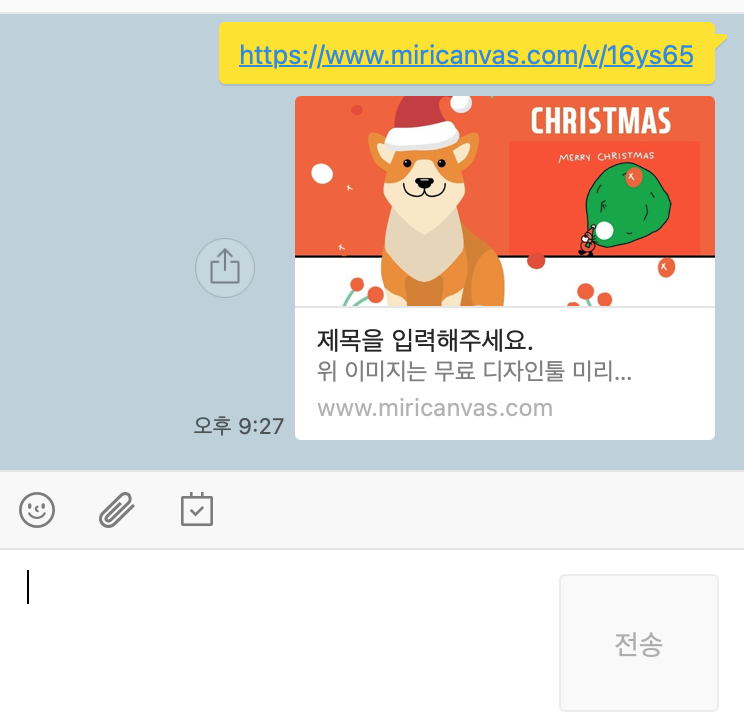 전송하시기 전 파일 저장하실 때, 파일명을 "Merry Christmas!!" 이런 식으로 저정해 놓으시면, 카톡 공유하실 때 "제목을 입력해 주세요."라고 안 나올 거 같습니다.