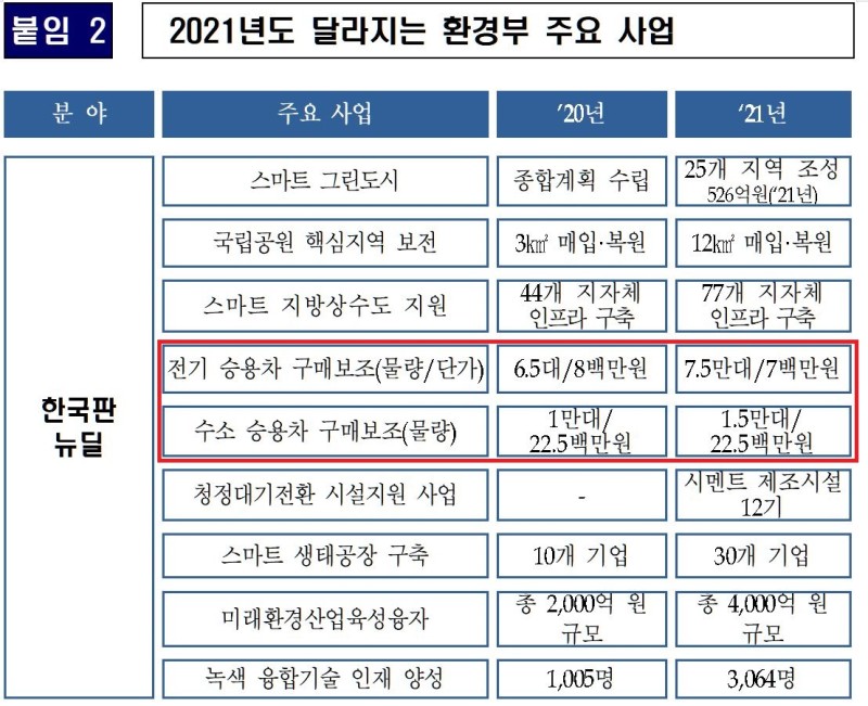 또한 보조금도 적어질 예정입니다. 2020년 800만 원 -> 2021년 700만 원으로 감소한 반면 지원 대수는 1만대 가량 증가하네요. 전체적인 보조금 예산은 늘어났지만, 개인이 받게 되는 혜택은 축소되겠네요. ㅠㅠ