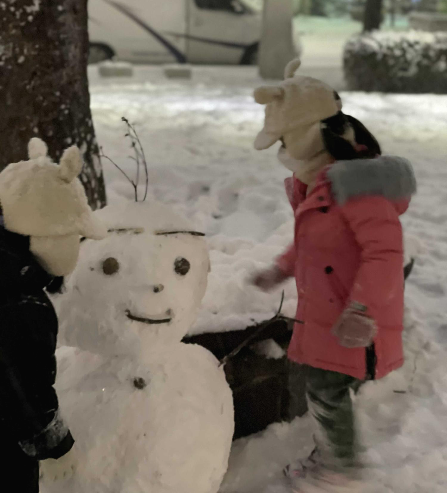 딸들과 눈이 오면 눈사람을 만들자고 약속을 했었는데, 오늘 한번 출동해 봐야겠습니다. 대충 저녁을 먹고 밖으로 나갔습니다.