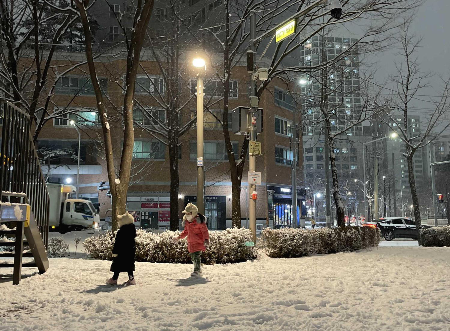 저는 전철역에서 집에 걸어오는 길(8분 거리)에 눈이 너무 많이 와서 한번 쉬었다 왔어요.. ㅜㅜ