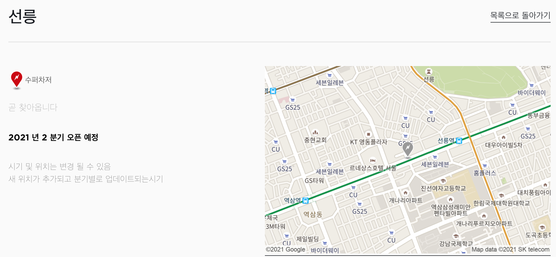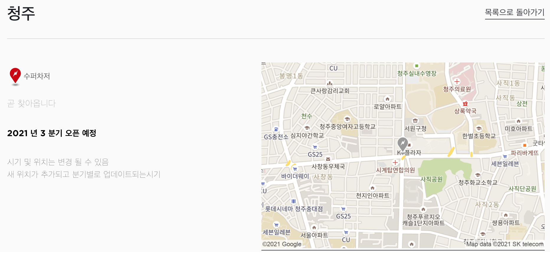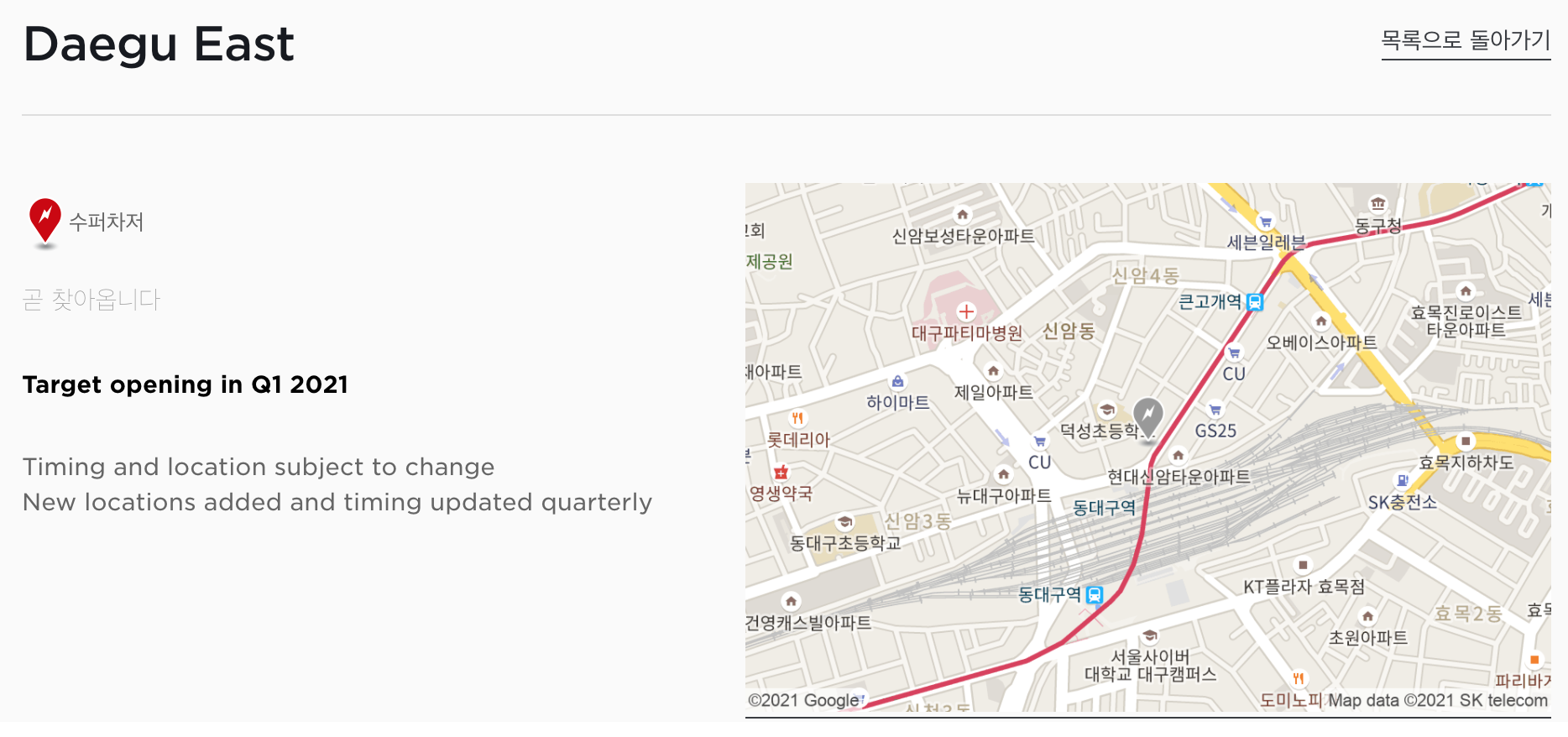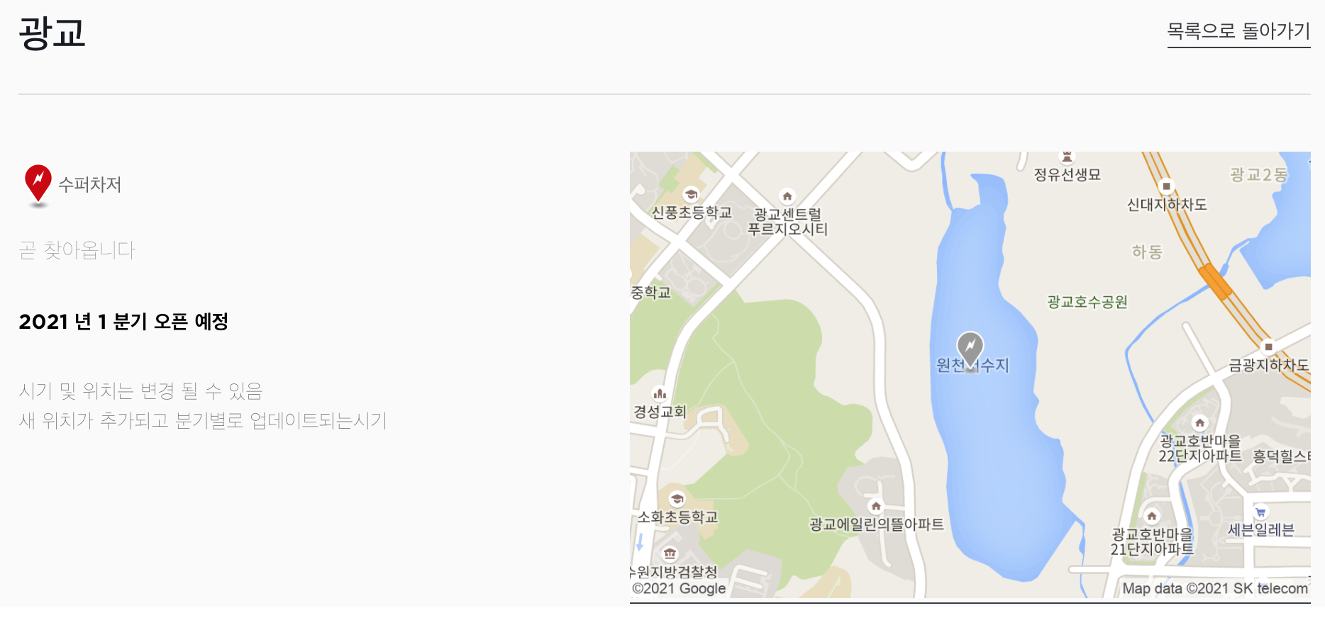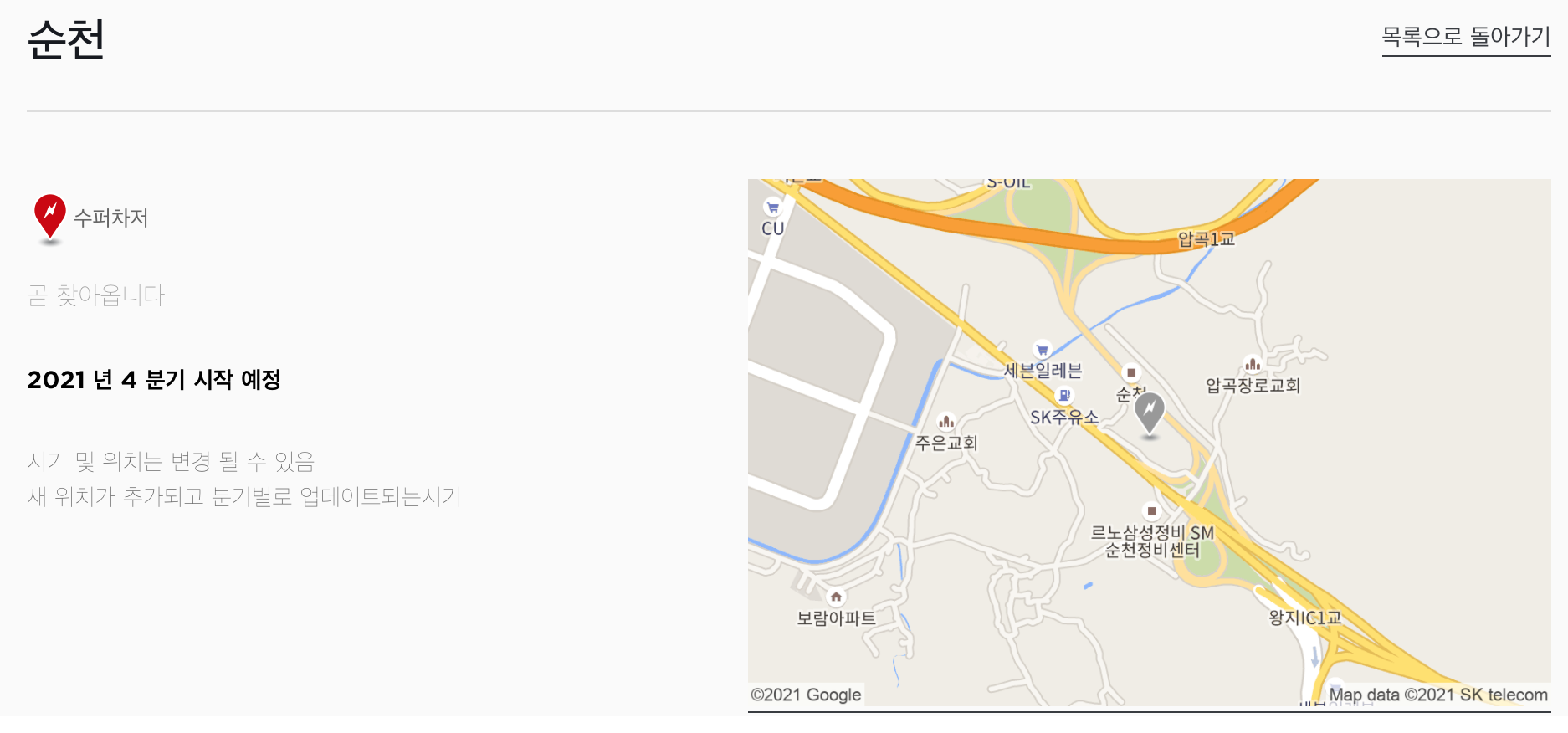 이렇게 올해 추가될 수퍼차저의 위치를 알아봤습니다.
