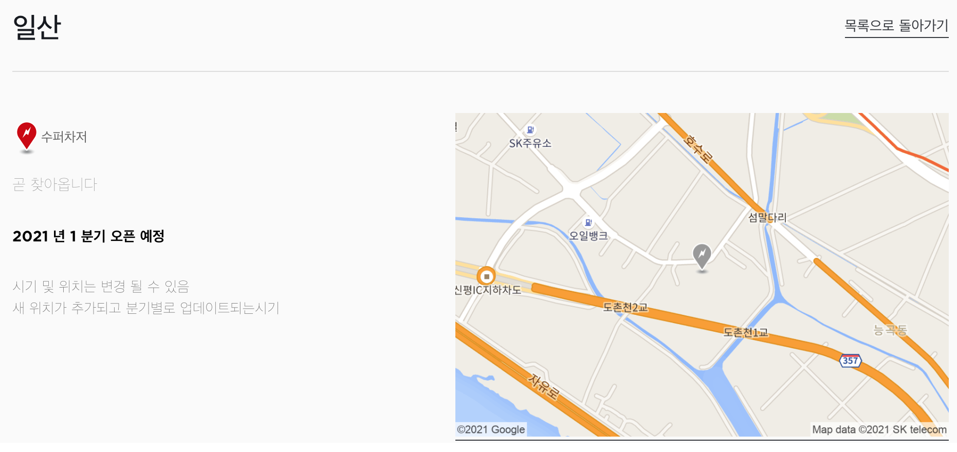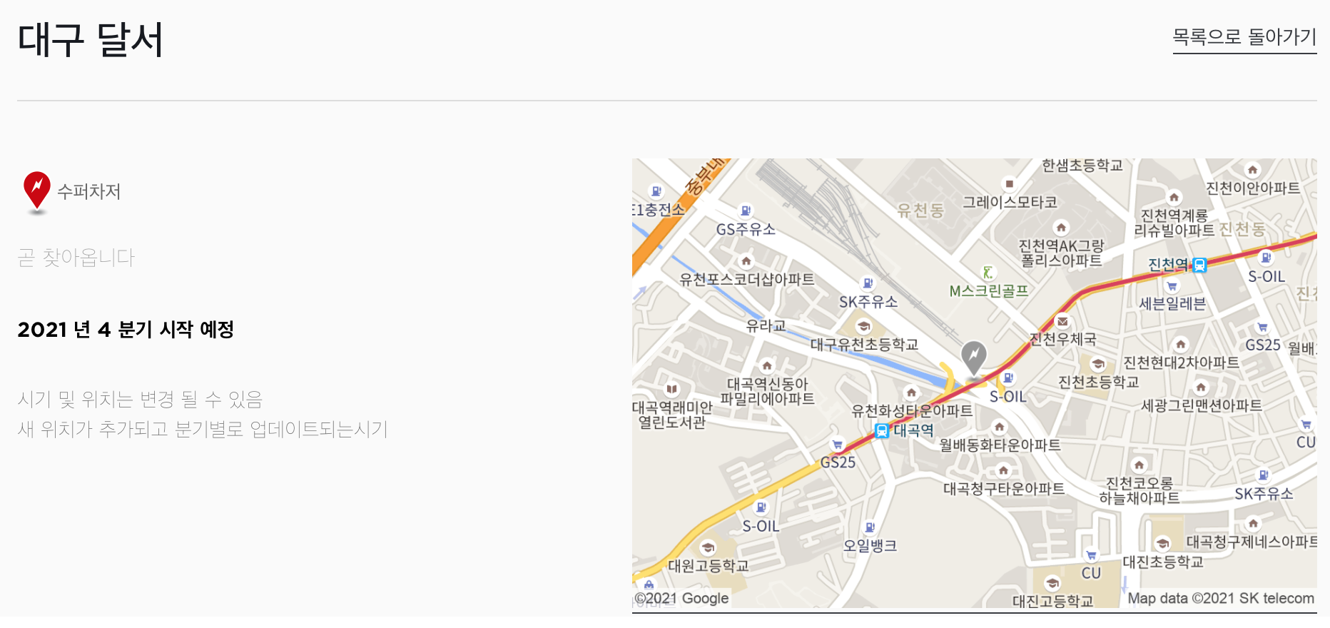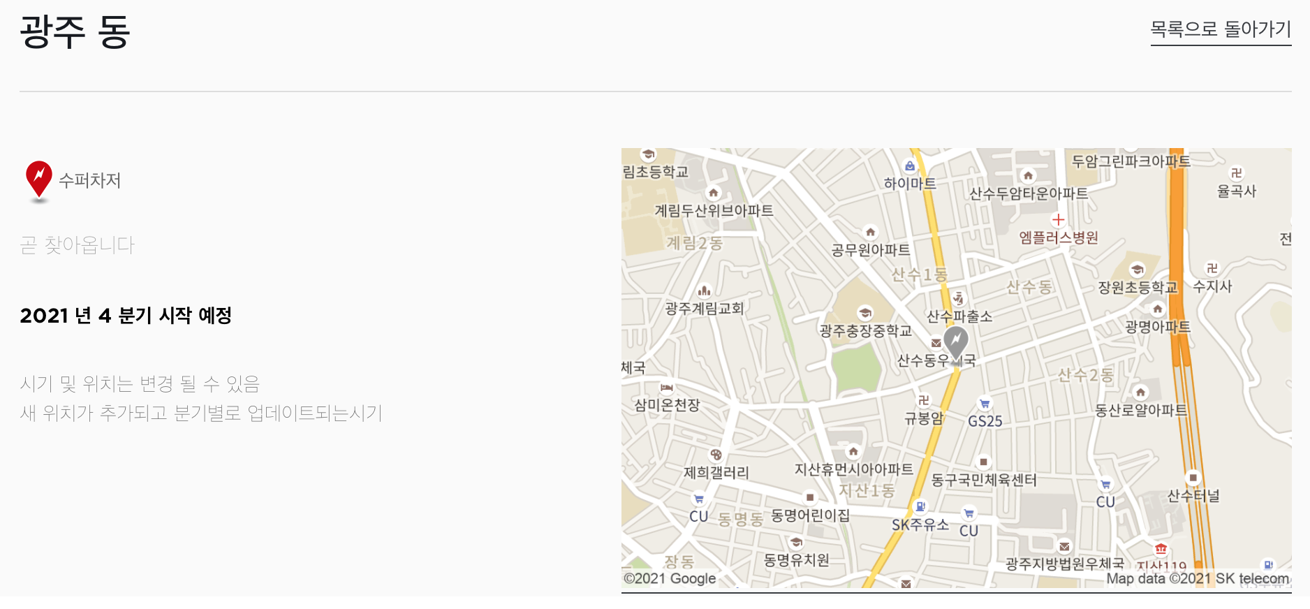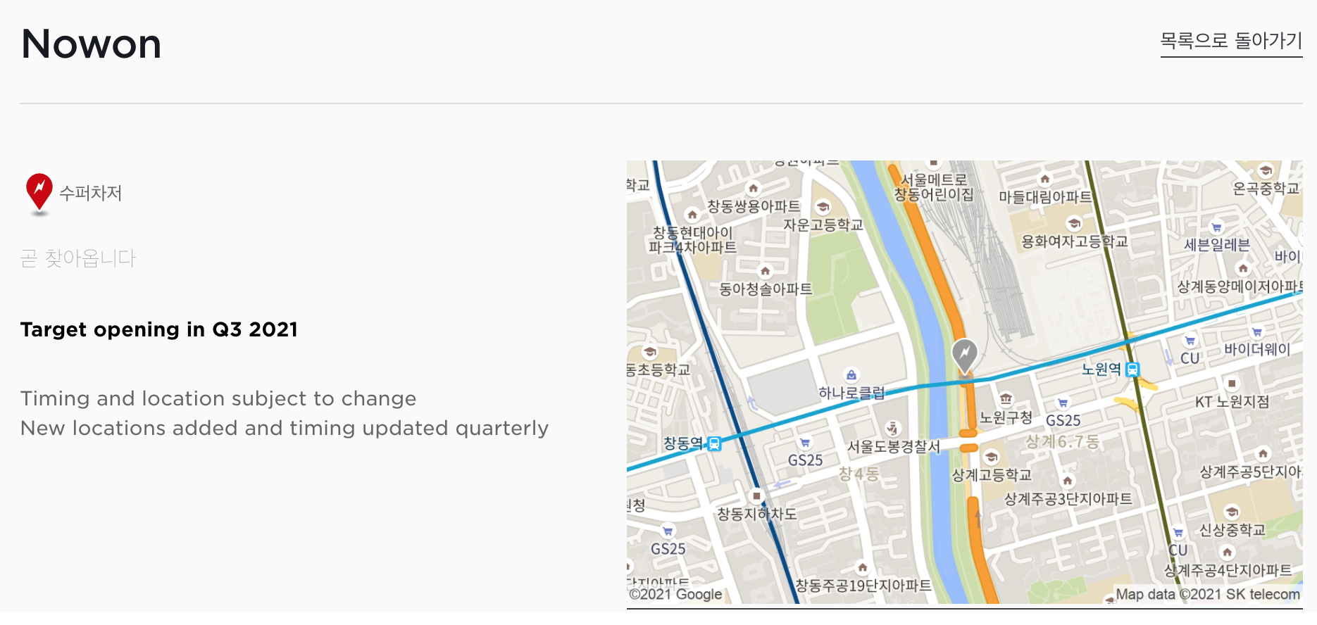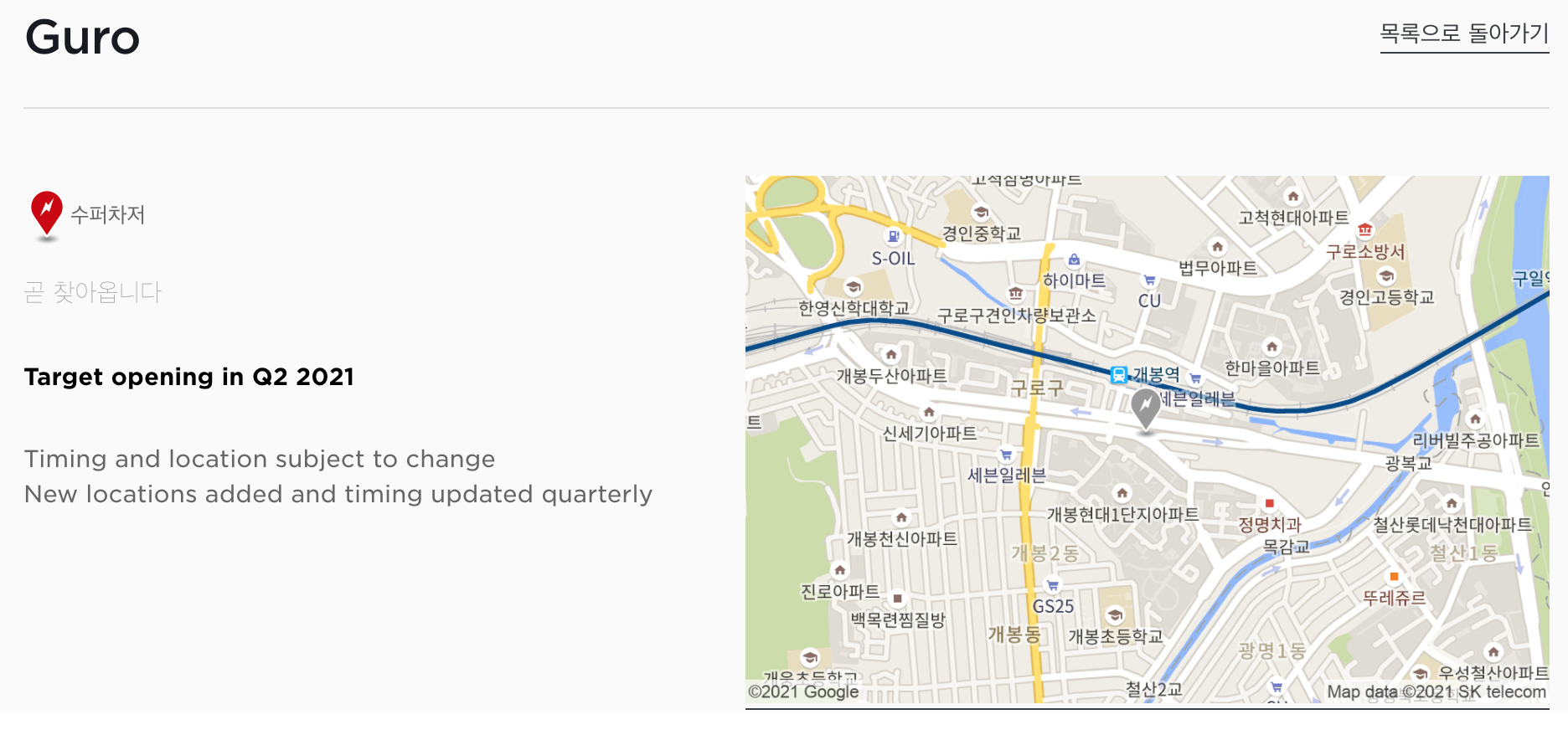 이렇게 올해 추가될 수퍼차저의 위치를 알아봤습니다.