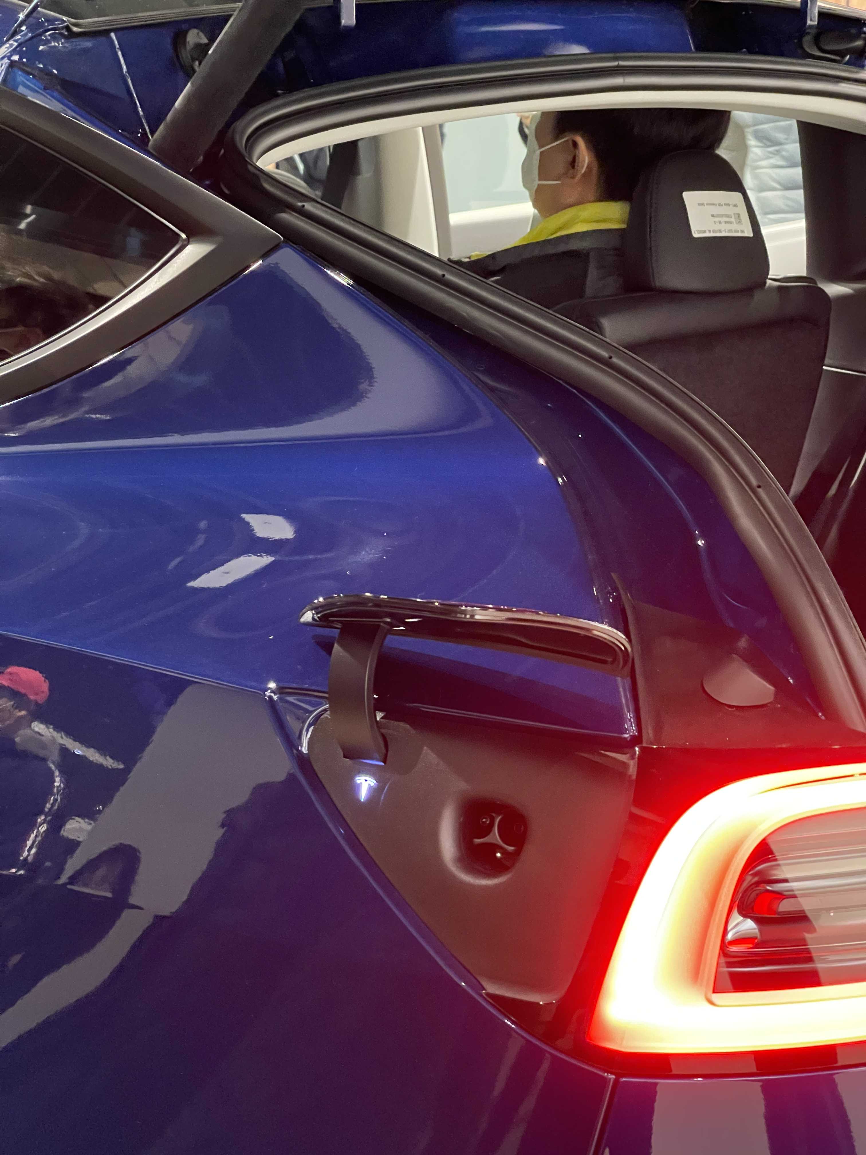 측면의 경우 모델 3도 휠 하우스 부분이 많이 튀어나와 있지만, 프런트와 리어 모두 휠 하우스 부분 볼륨감이 멋지게 느껴졌습니다. 전체적인 유선형 디자인과 어우러져 더 돋보이는 느낌이랄까? 아무튼 테슬라는 디자인 보고 타는 차가 아니라지만, 보면 볼수록 정이 가는 디자인이라고 해야 할까요? 일부 차량의 자극적인 디자인의 경우는 금방 질려버리는 경우가 있는데, 현재까지 테슬라의 디자인은 둥글둥글한 것이 처음 보면 확 끌리지 않지만 자꾸 봐도 질리지 않는것 같습니다. (디자인은 워낙 개인취향의 영역이기 때문에 자꾸봐도 끌리지 않는 분들도 계실 겁니다 ^^)