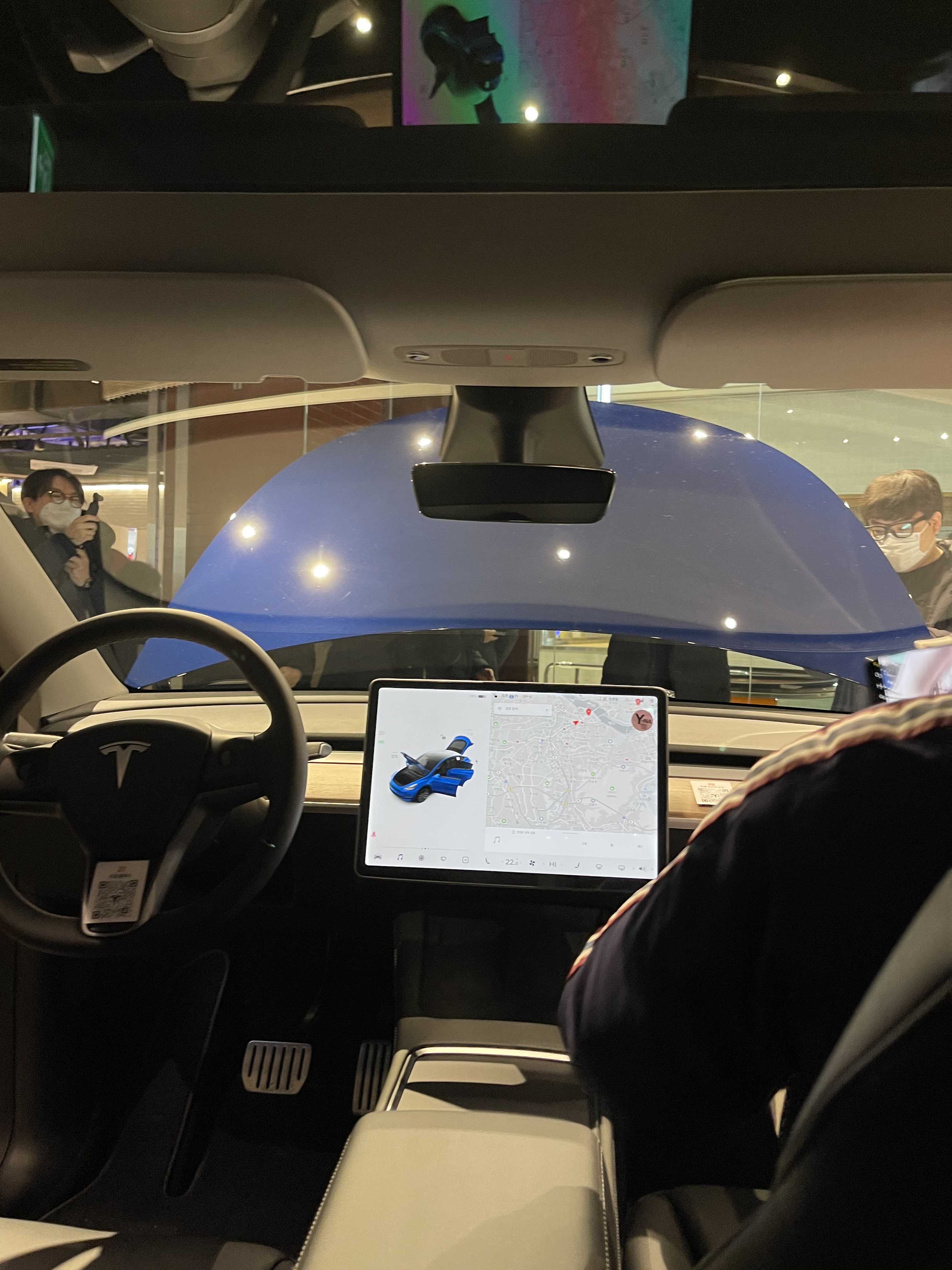 전반적으로 제가 생각했던 부분과 대부분 일치했습니다. 워낙 미디어를 통해 많은 자료를 본 후라 그런지 뭔가 우아한 Wow 포인트는 없었습니다. 다만 운전석에 앉았을 때 시야나 높이 감이 모델 3 보다 훨씬 높아서 좋았습니다. 2열에 탑승했을 때 공간도 넓었고요. 하지만 2열 리클라이닝 시 머리가 프레임에 닿는 부분은 조금 아쉽습니다. 이런 상황에 3열은 정말 유아용이라고 판단됩니다. 고민 없이 5인승을 고를 수 있겠습니다. 실제 공개된 7인승 영상에도 보시면 시트만 보여주는데.. 레그룸이 없다는 게 충격적이었는데요. 2열을 일정 부분 앞으로 당긴다고 해도 성인이 앉을 수 있는 공간은 아닐 겁니다. (루프라인 때문에 목을 접어야 할 수도 있어요 ㅎㅎ)