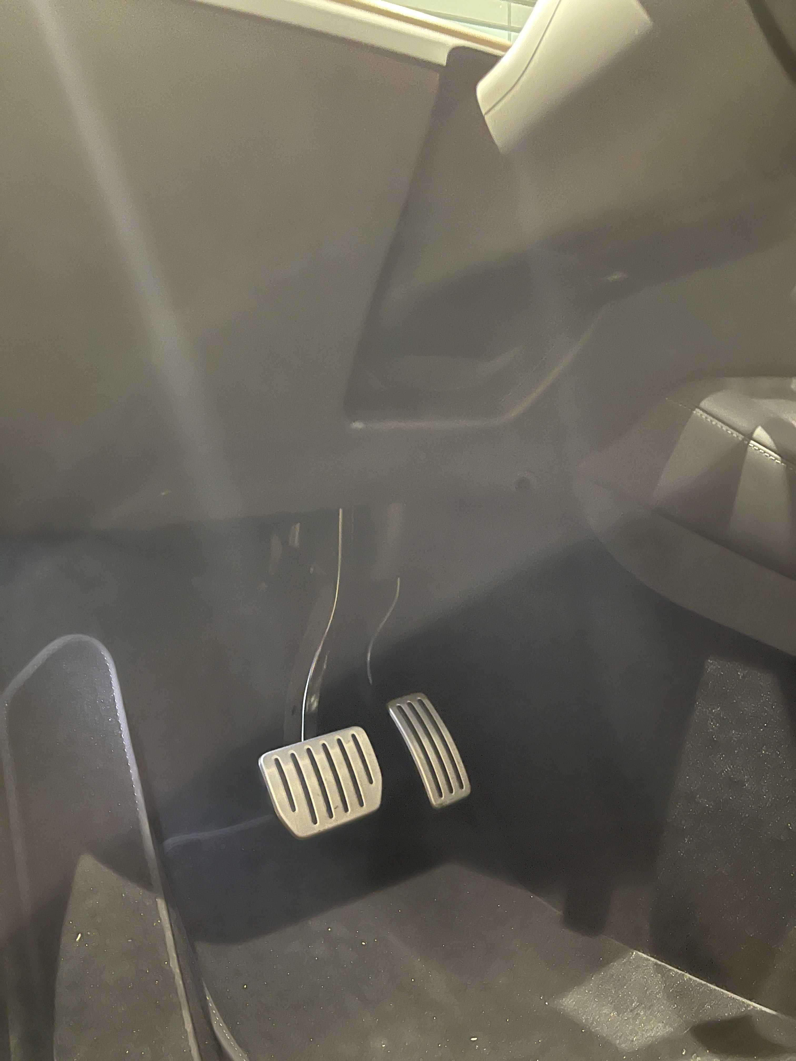 센터 콘솔에 폰 무선충전이 기본 적용되고 덮개가 없는 방식으로 바뀌었고, 컵홀더나 수남 공간의 디자인과 마감 퀄리티도 기존 블랙 하이그로시 보다 훨씬 좋아졌습니다. (약간 고급져 보였습니다, 약간.. 약간) 전시된 모델은 퍼포먼스라 알루미늄 알로이 페달이 적용되어 있는데요. 롱 레인지나 스탠더드의 경우 적용되지 않는 부분입니다.