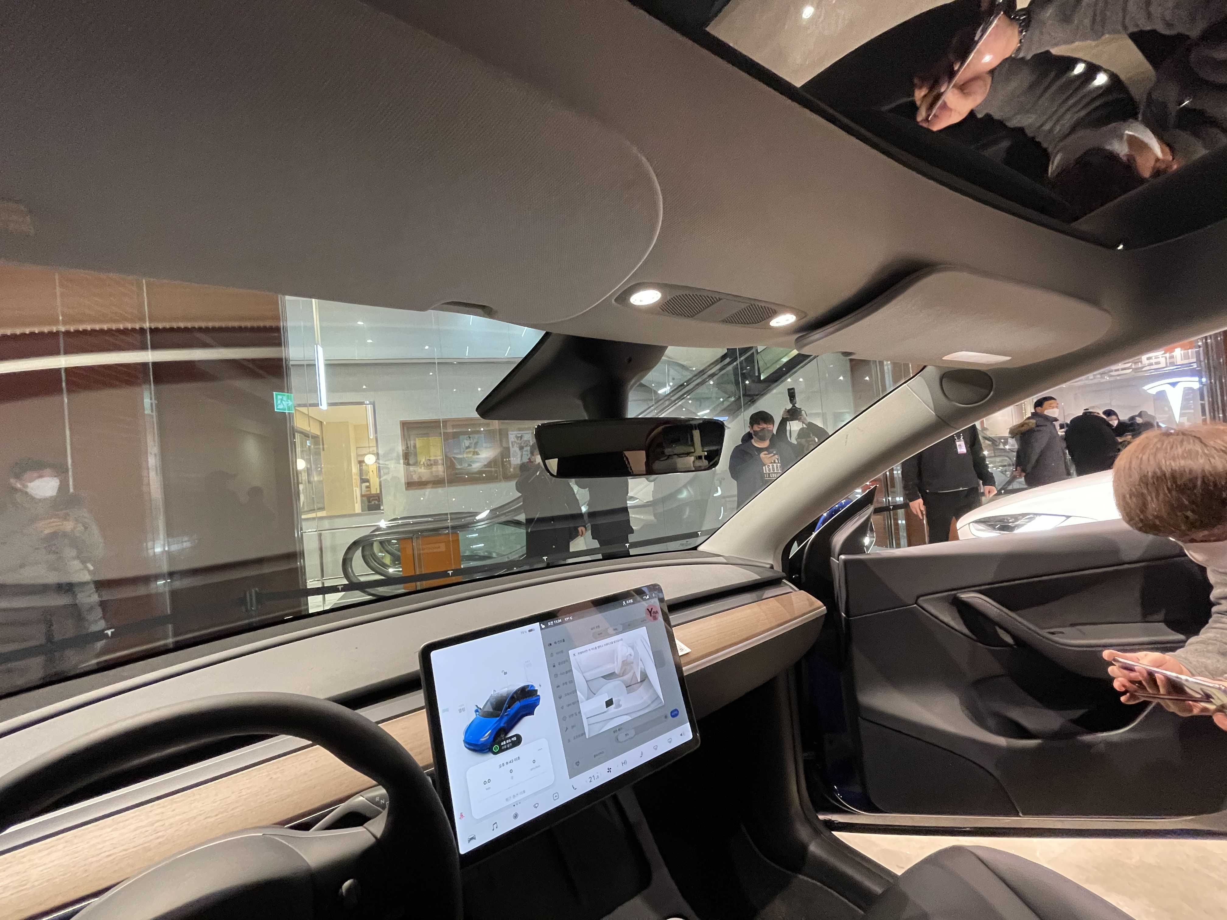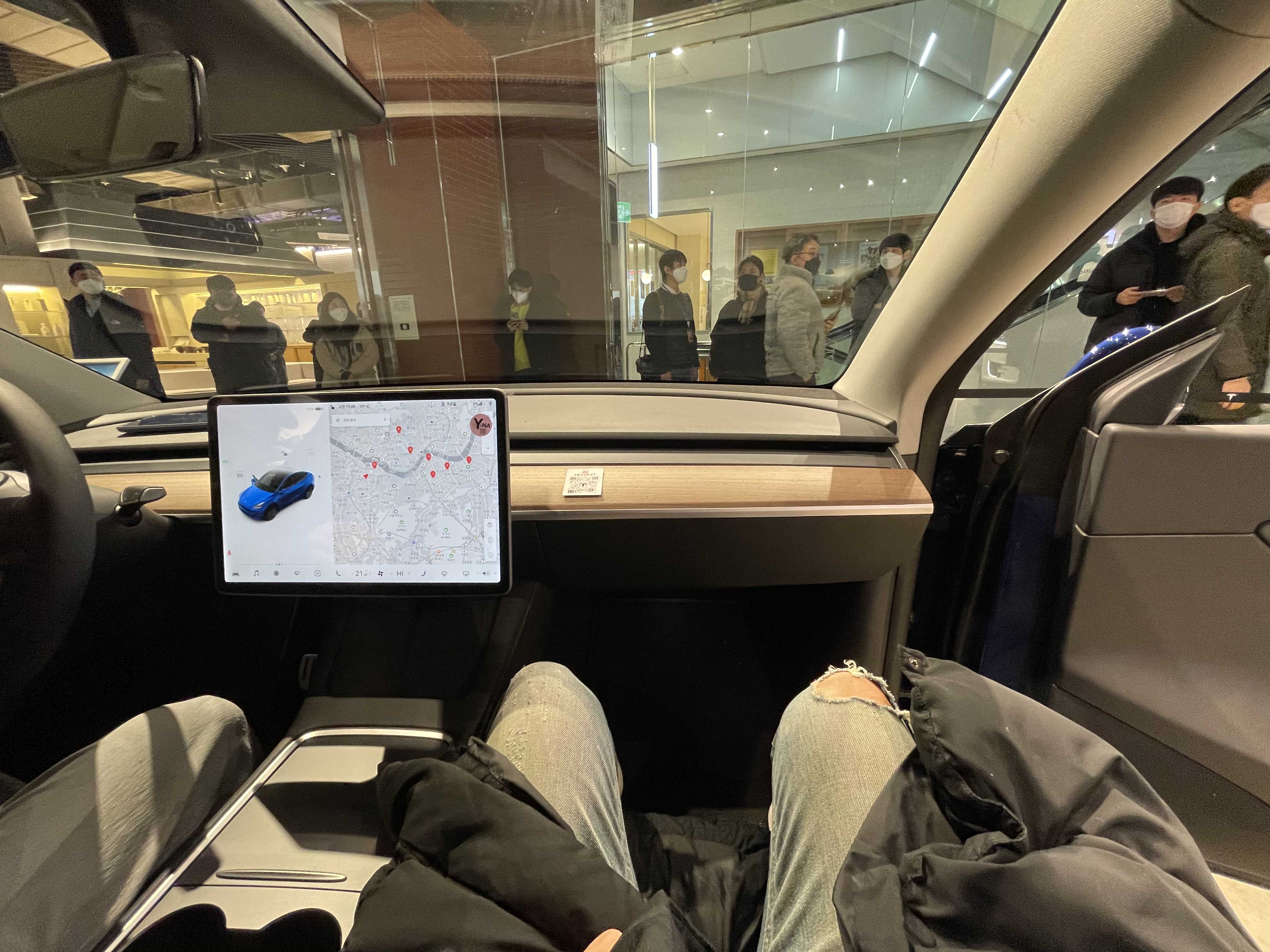 전반적으로 제가 생각했던 부분과 대부분 일치했습니다. 워낙 미디어를 통해 많은 자료를 본 후라 그런지 뭔가 우아한 Wow 포인트는 없었습니다. 다만 운전석에 앉았을 때 시야나 높이 감이 모델 3 보다 훨씬 높아서 좋았습니다. 2열에 탑승했을 때 공간도 넓었고요. 하지만 2열 리클라이닝 시 머리가 프레임에 닿는 부분은 조금 아쉽습니다. 이런 상황에 3열은 정말 유아용이라고 판단됩니다. 고민 없이 5인승을 고를 수 있겠습니다. 실제 공개된 7인승 영상에도 보시면 시트만 보여주는데.. 레그룸이 없다는 게 충격적이었는데요. 2열을 일정 부분 앞으로 당긴다고 해도 성인이 앉을 수 있는 공간은 아닐 겁니다. (루프라인 때문에 목을 접어야 할 수도 있어요 ㅎㅎ)