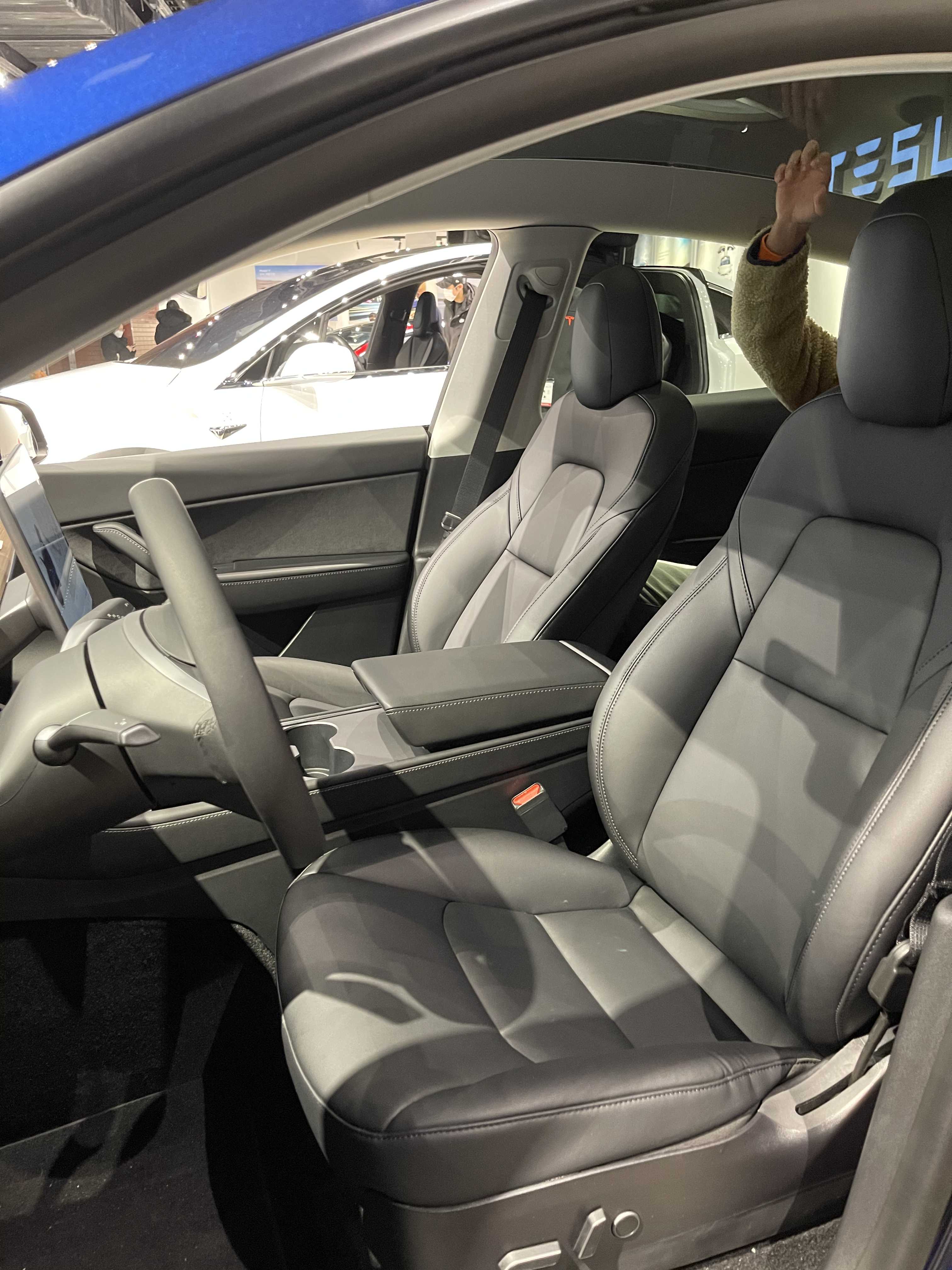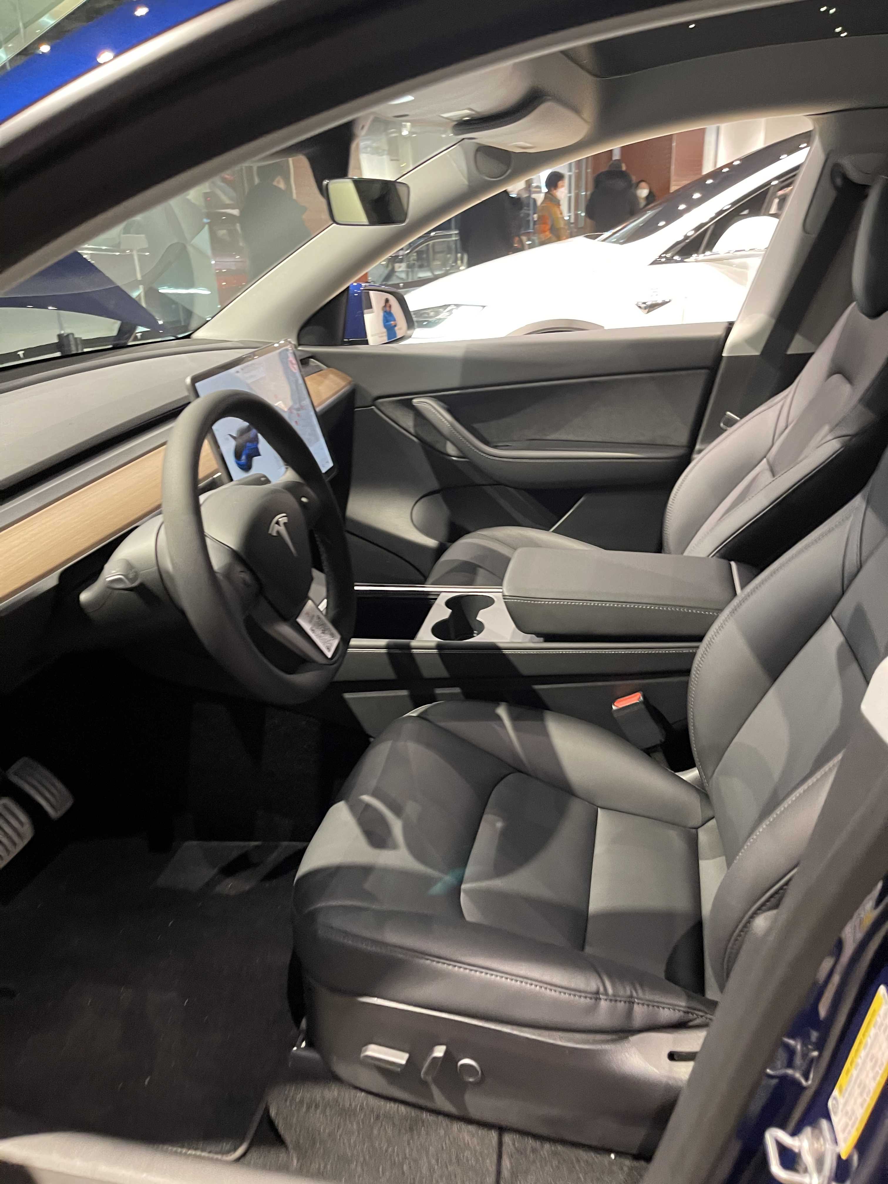 운전석 시트는 생각보다 편했습니다. 사이드 볼스터가 옆구리를 잘 잡아줬고, 요추 지지대도 있어서 편했습니다. 허벅지 부분이 조금 뜨는 게 아쉬웠습니다. 시트를 몸에 맞게 조절하기는 대기인원이 많아 어려웠습니다. 시트 및 운전석은 모델 3에서 이미 많이 본 레이아웃이라 특별하지 않았습니다.