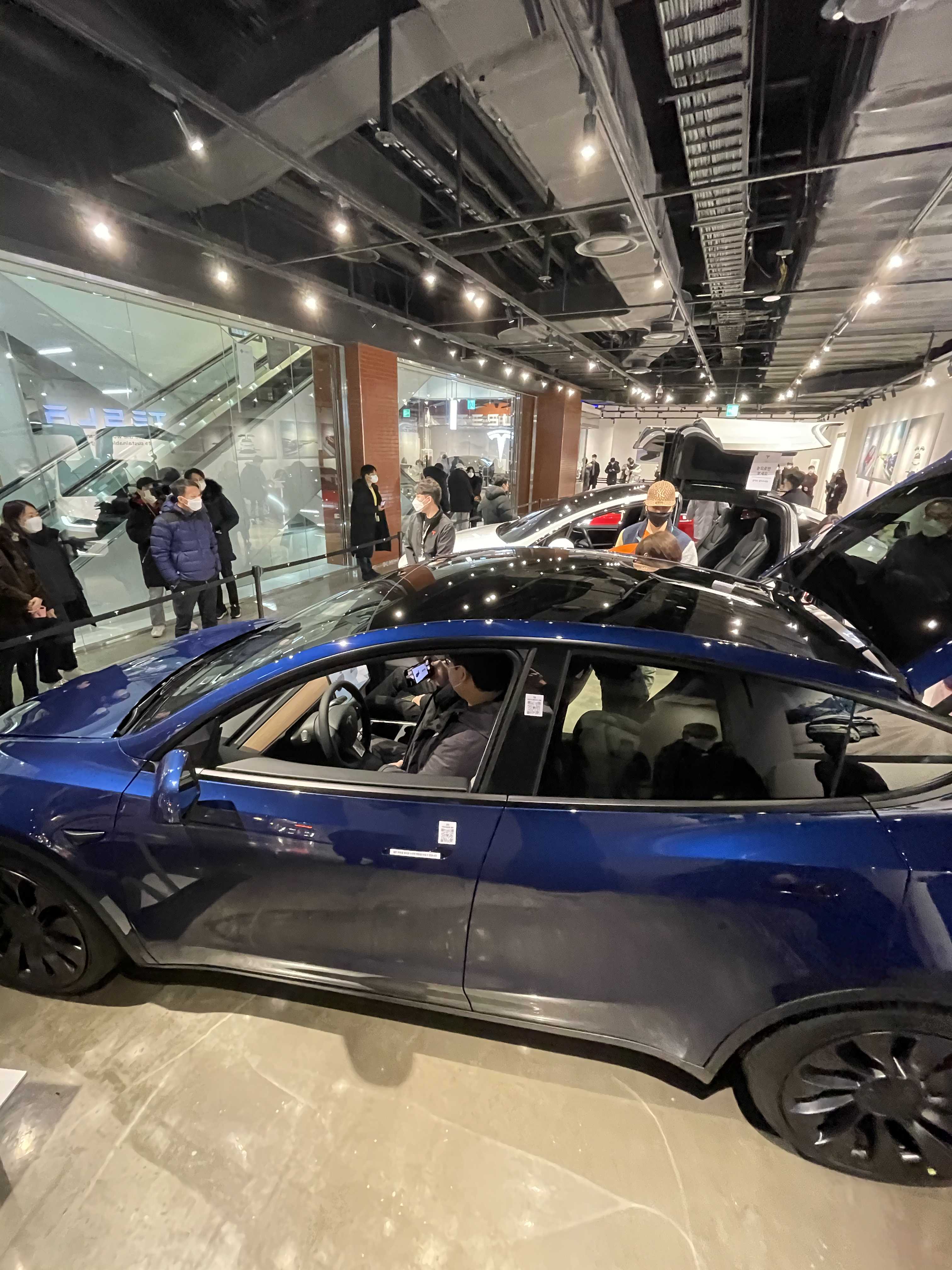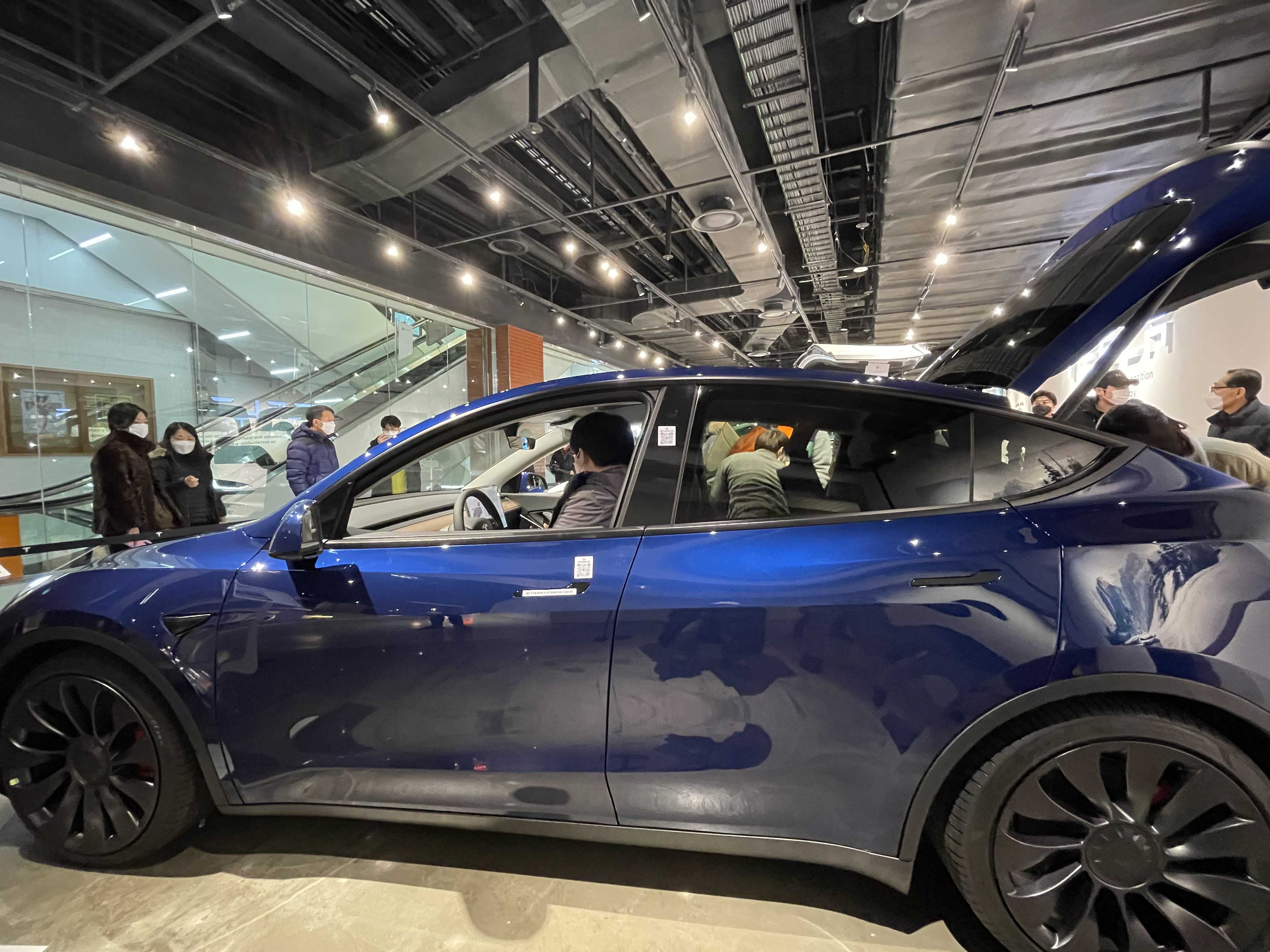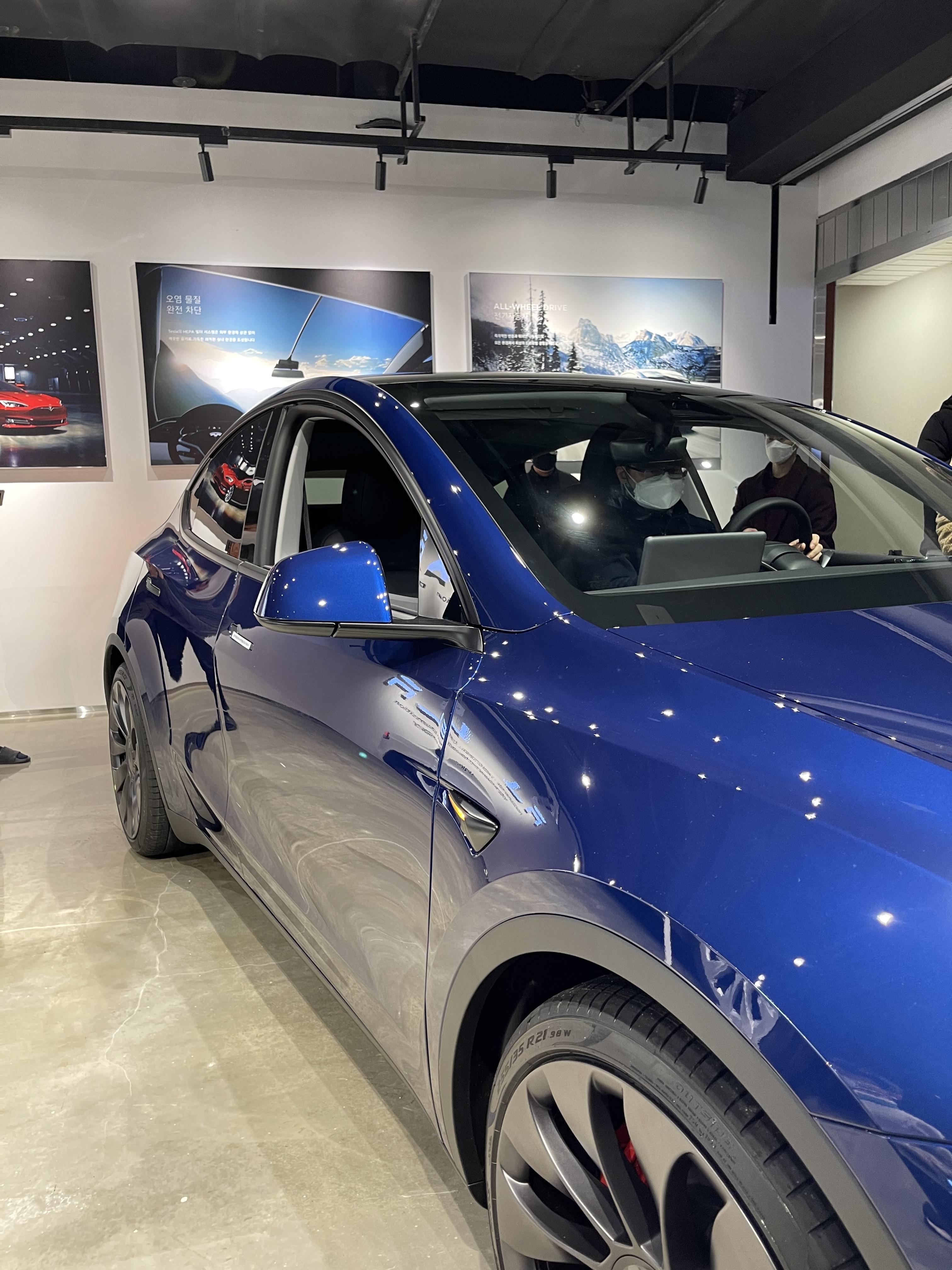 아무튼 영등포에는 모델Y 딥 블루 메탈릭, 솔리드 블랙 두 가지 색상이 전시되어 있고, 잠실에는 레드 멀티코트가 전시되어 있으니 3가지 색상은 직접 눈으로 보고 결정하실 수 있습니다.