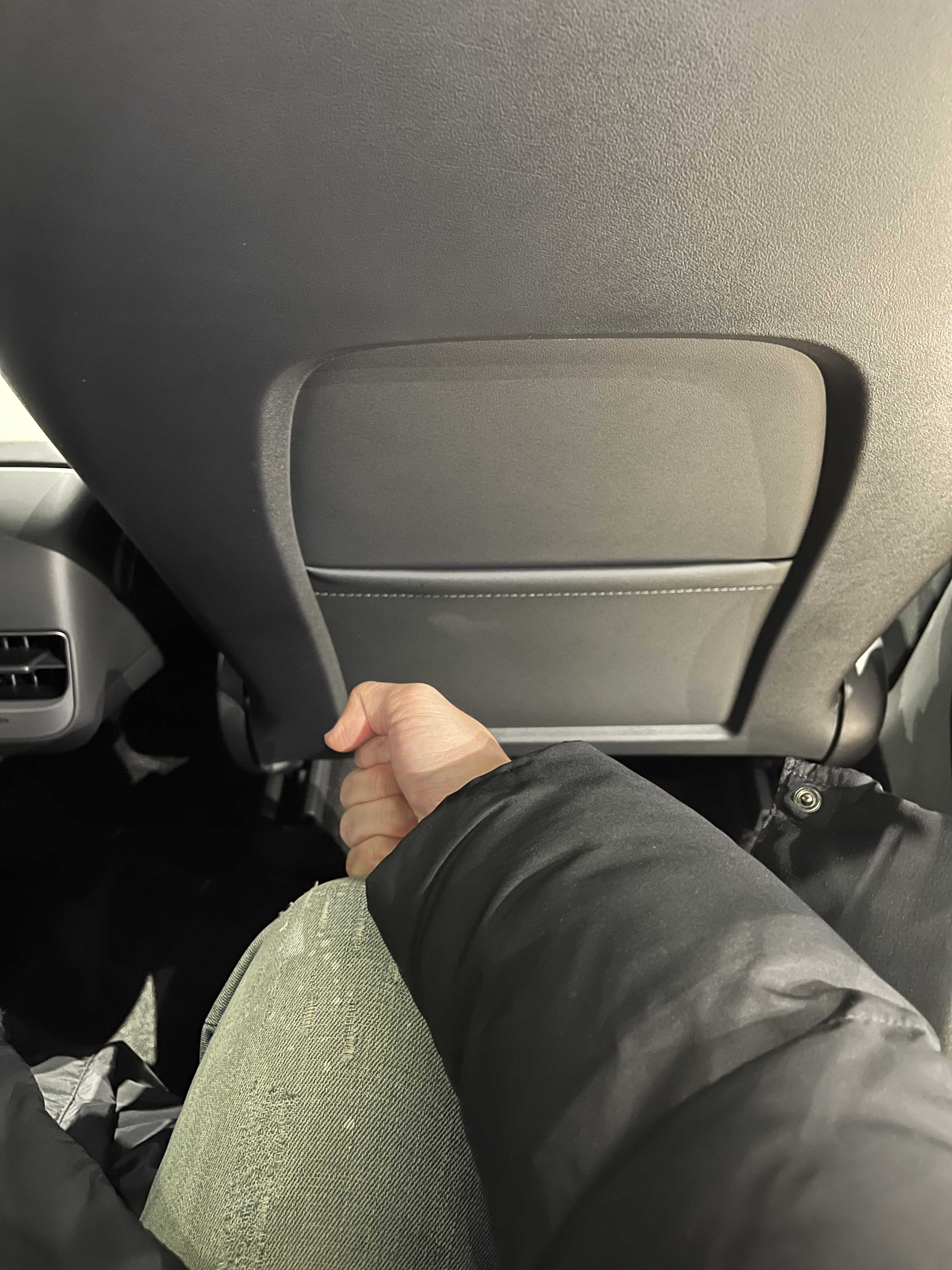 2열은 모델 3 대비 레그룸이 더 넓었습니다. 주먹 2개가 들어가고 남는 공간이었고요. 센터 터널은 테슬라니까 당연히 없어서 만약 가운데 자리에 사람이 타더라도 편할 듯합니다. 모델 Y의 최대 장점? 이 바로 탁 트인 글라스 루프 때문에 2열의 개방감이 좋다는 부분이죠. 역시나 개방감은 최고였습니다. 모델 3는 프레임이 지나가면서 한번 끊기는데 반해 모델 Y는 2열 헤드룸 뒤쪽으로 프레임이 지나가서 궁극의 개방감을 보여주게 되는 거죠. 하지만 이로 인해 2열을 리클라이닝 하게 되면 머리가 프레임에 닿더라고요. 이 부분은 분명한 단점입니다. 제 키가 178인데 리클라이닝을 편하게 하고 기대앉으면 정수리 부분이 저 프레임에 닿아서 방지턱을 넘을 때나 덜컹 거리는 구간에서 머리를 부딪힐게 분명하더라고요. 2열에 성인이 탄다면 그 부분은 분명 문제가 될 것이라고 판단됩니다.