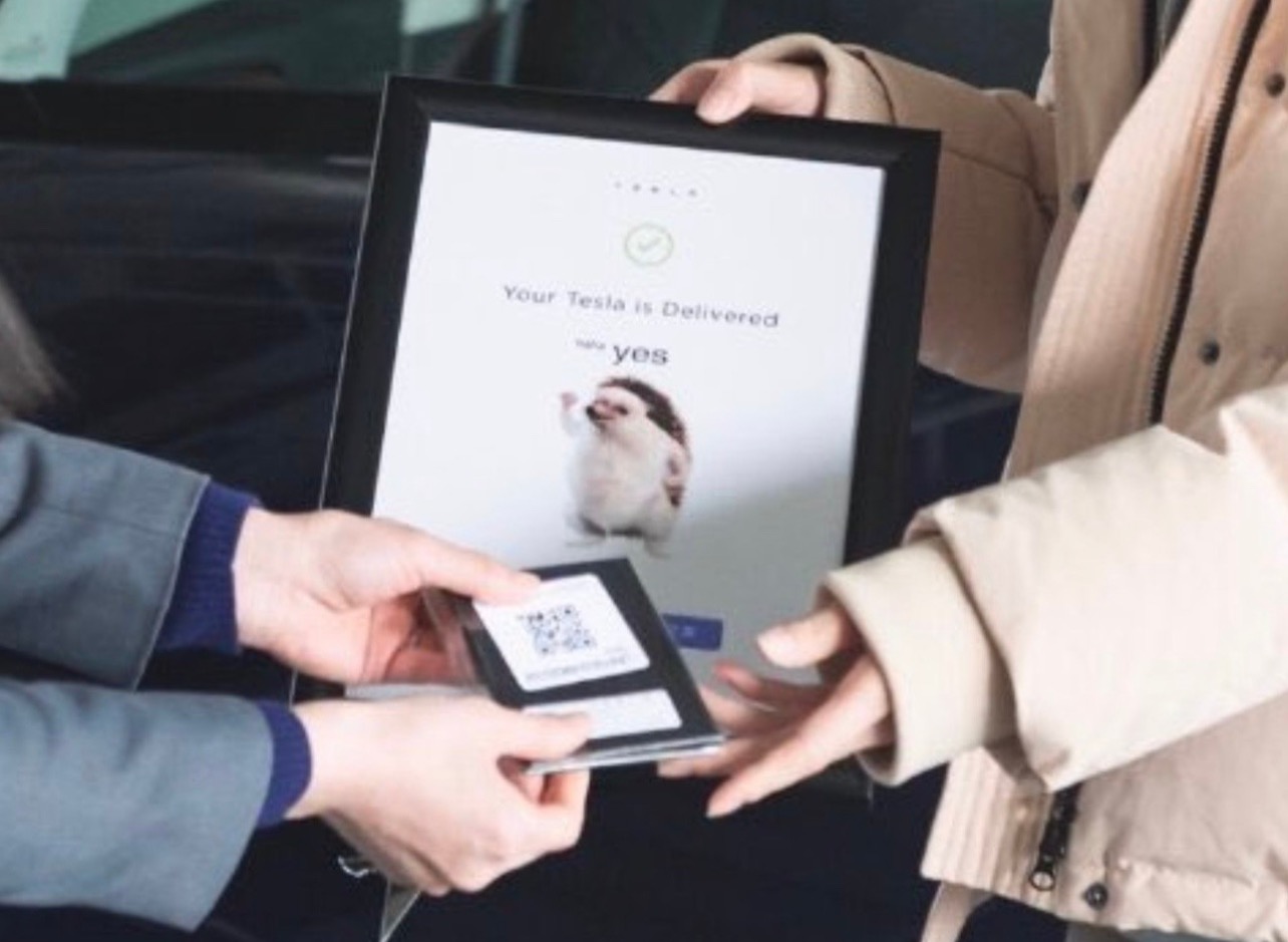 "Your Tesla is Delivered" 고슴도치가 있는 인도장?이 인상적입니다.