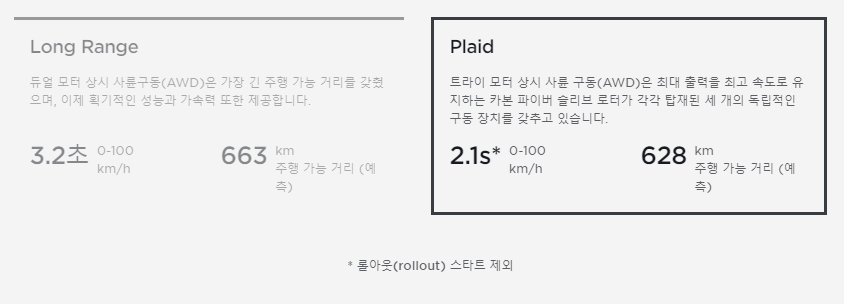 성능상으로도 많은 변화가 있습니다. 새로운 플랫폼이 적용되었고, 모델 S 플레드 모델(기존 퍼포먼스)의 경우 제로백이 2.1초입니다. 정말 대박입니다. 주행거리도 628km로 엄청나게 늘어나 600km의 벽을 넘어섰습니다. 새로운 플랫폼이 적용돼서 충전 효율도 기존보다 25% 증가했다고 하네요. 더 충격적인 부분은 플레드 플러스 트림의 경우는 주행거리가 무려 837km입니다. 4680 배터리를 적용한 결과로 예측되는데요. 머스크가 말하는 1,000km가 현실화되는 건가요? 정말 대단합니다. 하지만 플레드 플러스 모델은 내년에나 인도가 가능할 거라고 하는데요. 아직 4680 배터리 적용은 조금 더 기다려야 하나 봅니다.