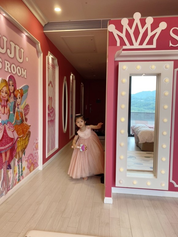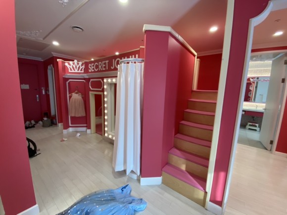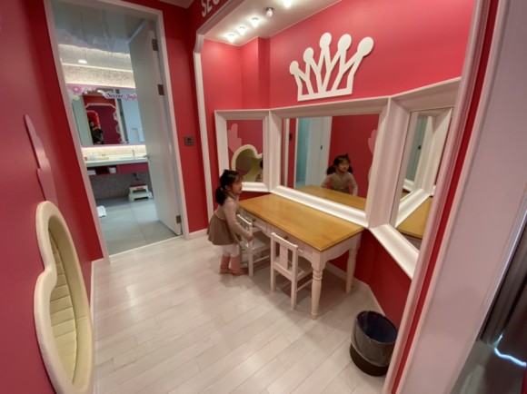 스위트룸은 패밀리룸과는 미끄럼틀 크기부터 다르네요~ 공주옷도 두벌 걸려있고요~