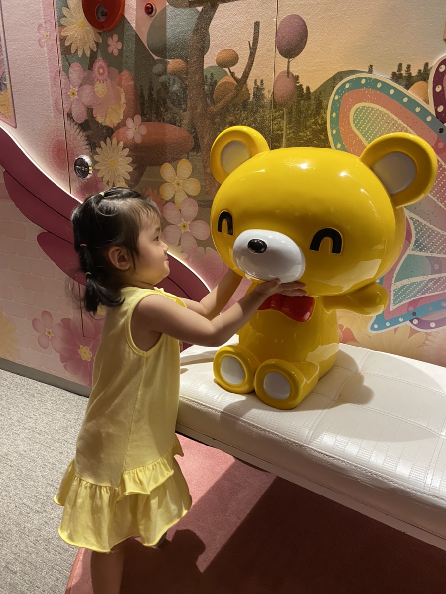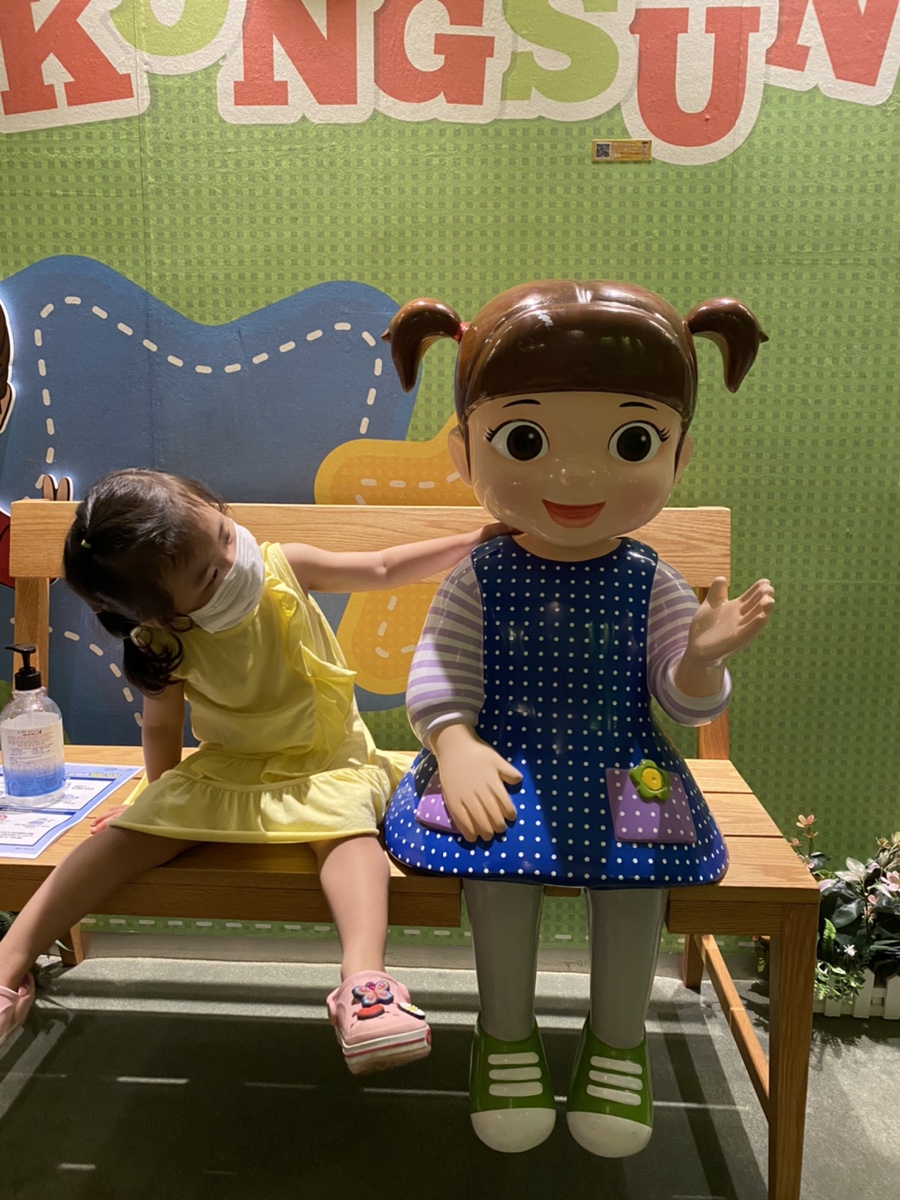 체크인하고 방으로 가는 복도에 캐릭터들과 사진 찍을만한 스폿이 있어요. 블룸비스타에는 콩순이 캐릭터방도 있어서 콩순이 모형 하고도 사진을 찍었어요. (남자아이들을 위한 카봇? 또봇? 방도 있어요~)