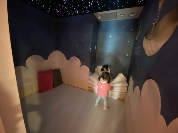 패밀리룸은 2층 다락 공간과 미끄럼틀, 작은 침실 공간만 있어서 다소 좁게 느껴졌습니다. 공주옷 입고 미끄럼틀 타고 1-2시간 놀다 보면 애들이 쉽게 질려하더라고요. ^^;;