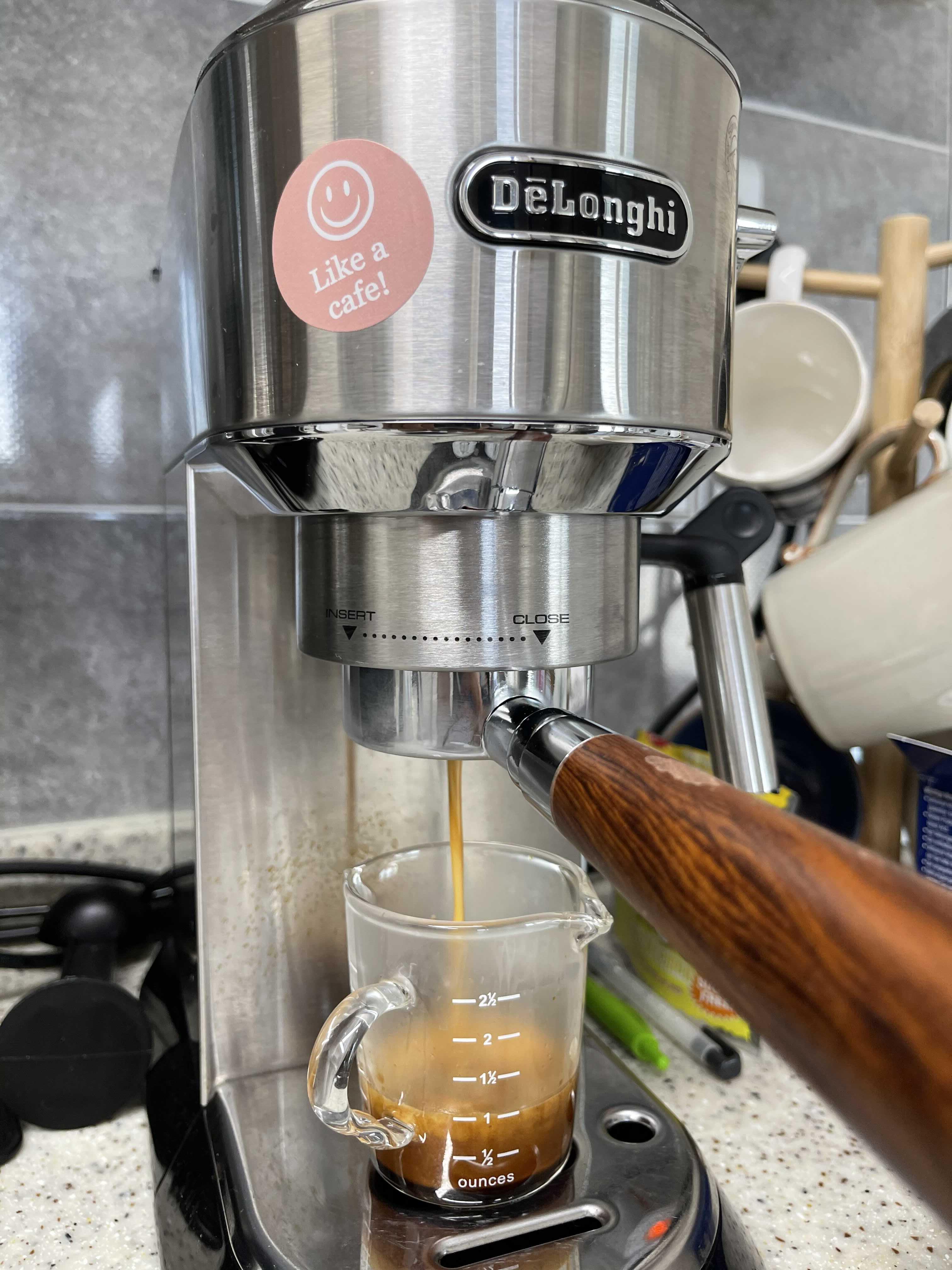 예쁘게 탬핑해서, 에스프레소를 추출해줍니다.