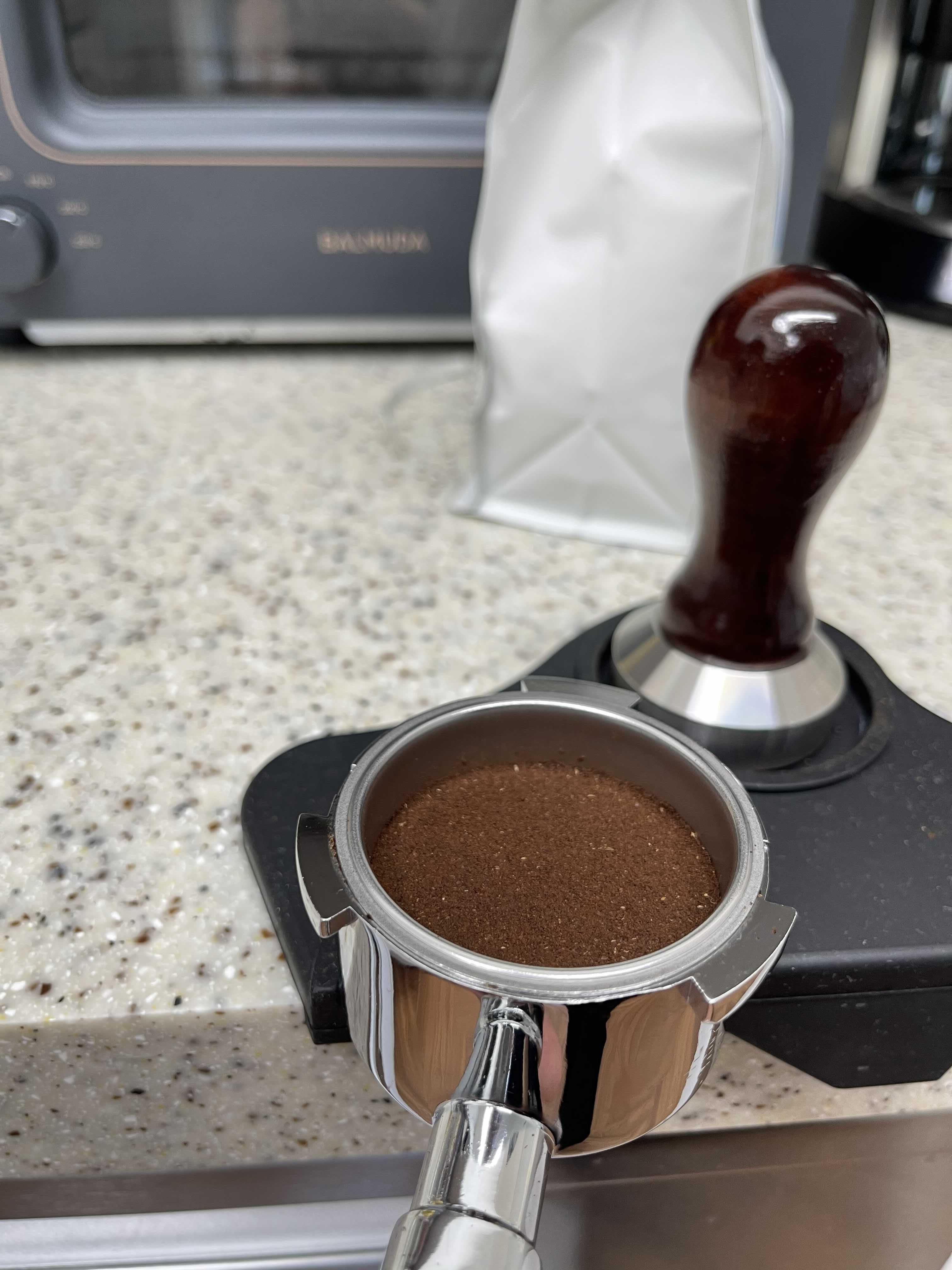 예쁘게 탬핑해서, 에스프레소를 추출해줍니다.