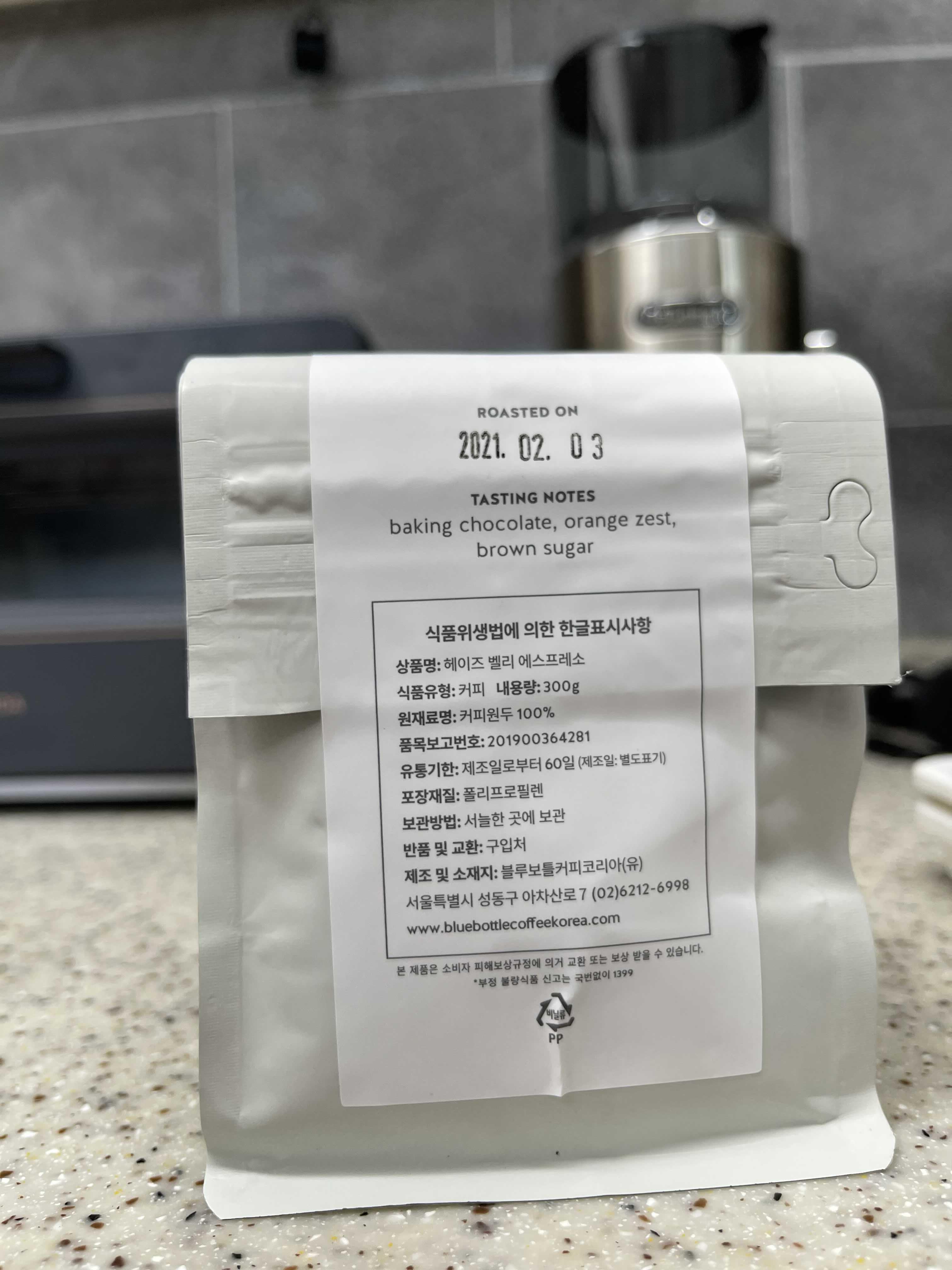 오늘은 원두 리뷰 시리즈 3번째 포스팅, 블루보틀 "헤이즈 벨리 에스프레소(Hayes Valley Espresso)"입니다.